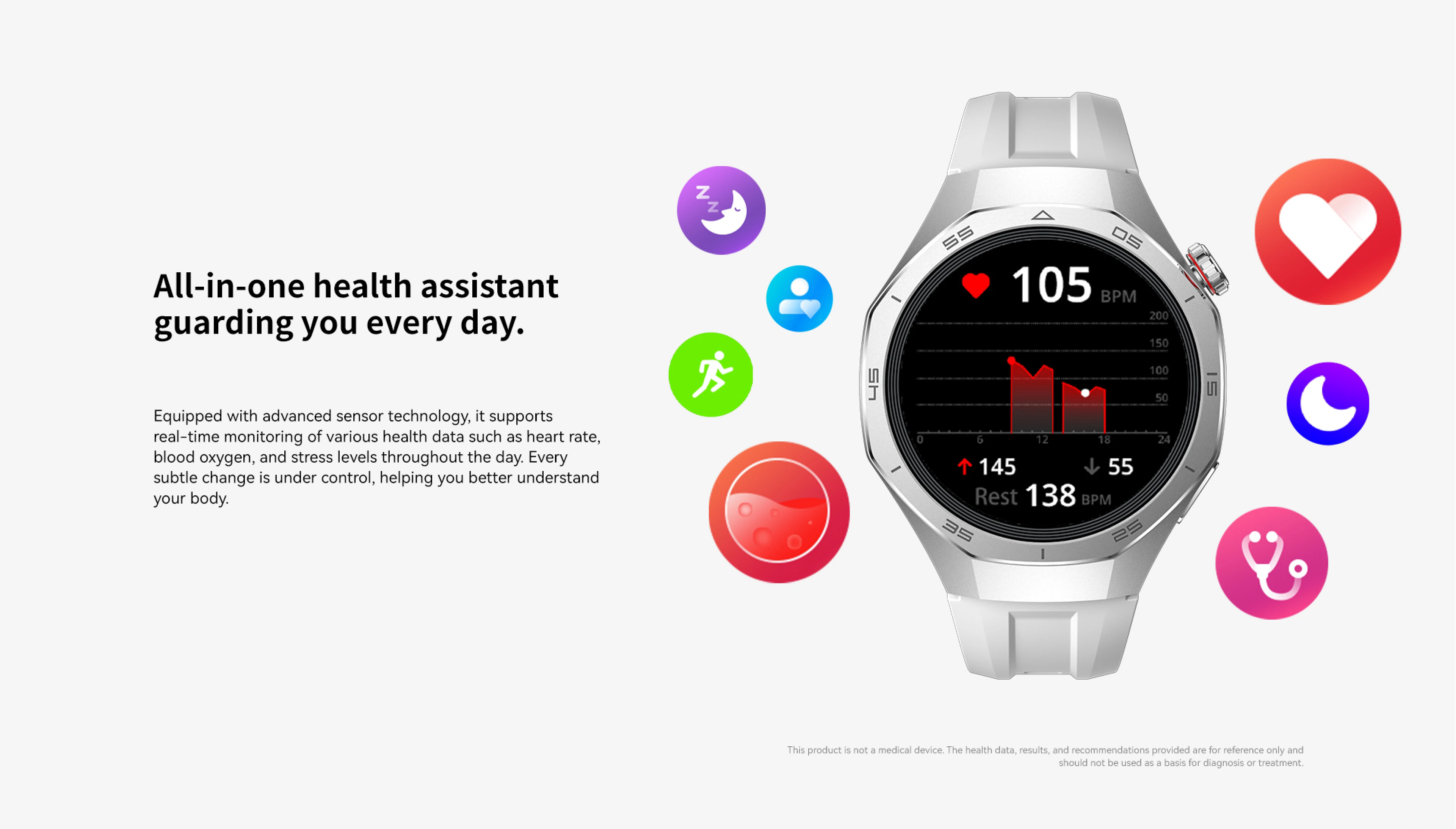 Aviso de Saúde: Este dispositivo não é um equipamento médico profissional. Os dados fornecidos são para referência e monitoramento geral do bem-estar.
